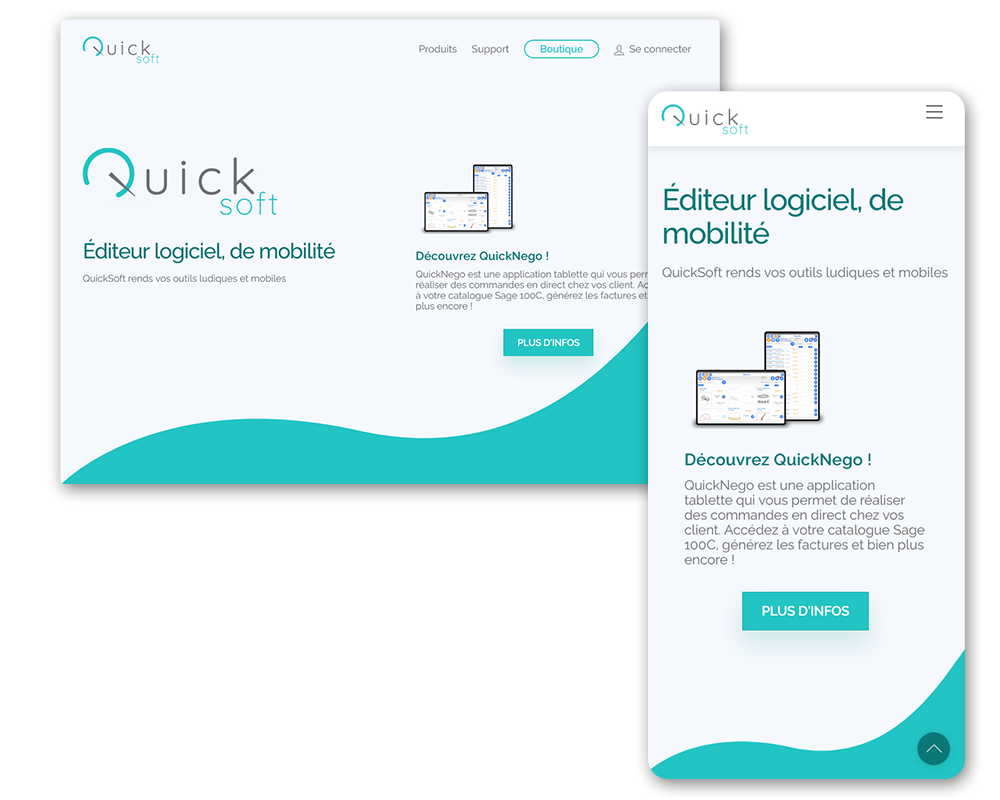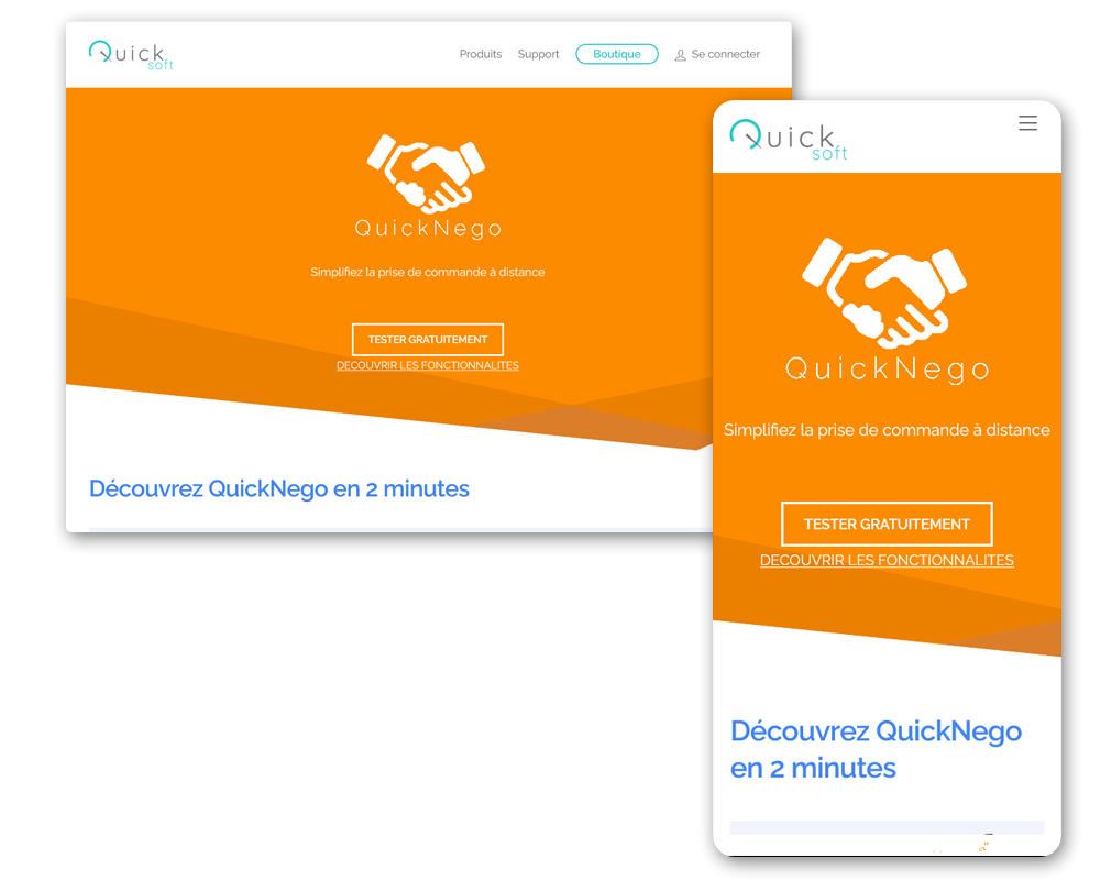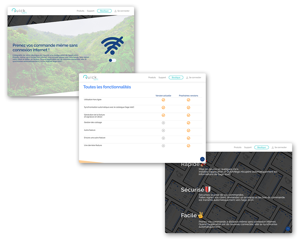 Quicksoft est un éditeur de logiciel destiné à l’intégration avec sage. A l’instar de la page d’accueil très sobre, leur premier produit, QuickNego nécessitait une page produit percutante qui explique simplement la complexité technique du produit. Le site intègre l’achat de produit digital et l’envoi automatique de licences.